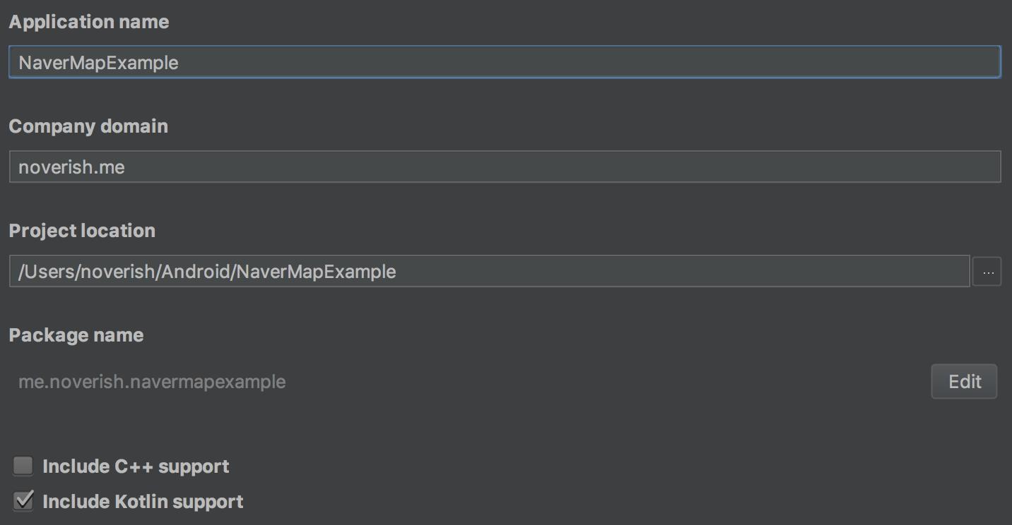 NaverMapExample 이라는 이름으로 프로젝트를 하나 만들었습니다.