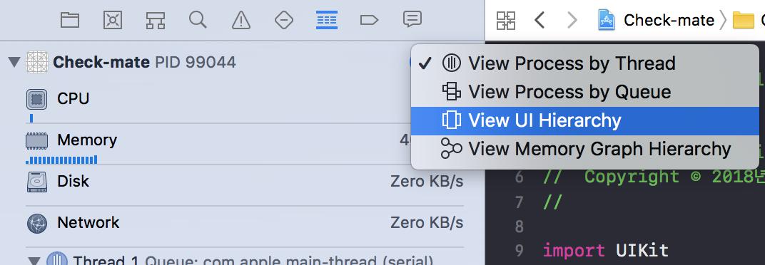 디버깅 중에 View Hierarchy 및 Size, Property가 보고 싶을 때